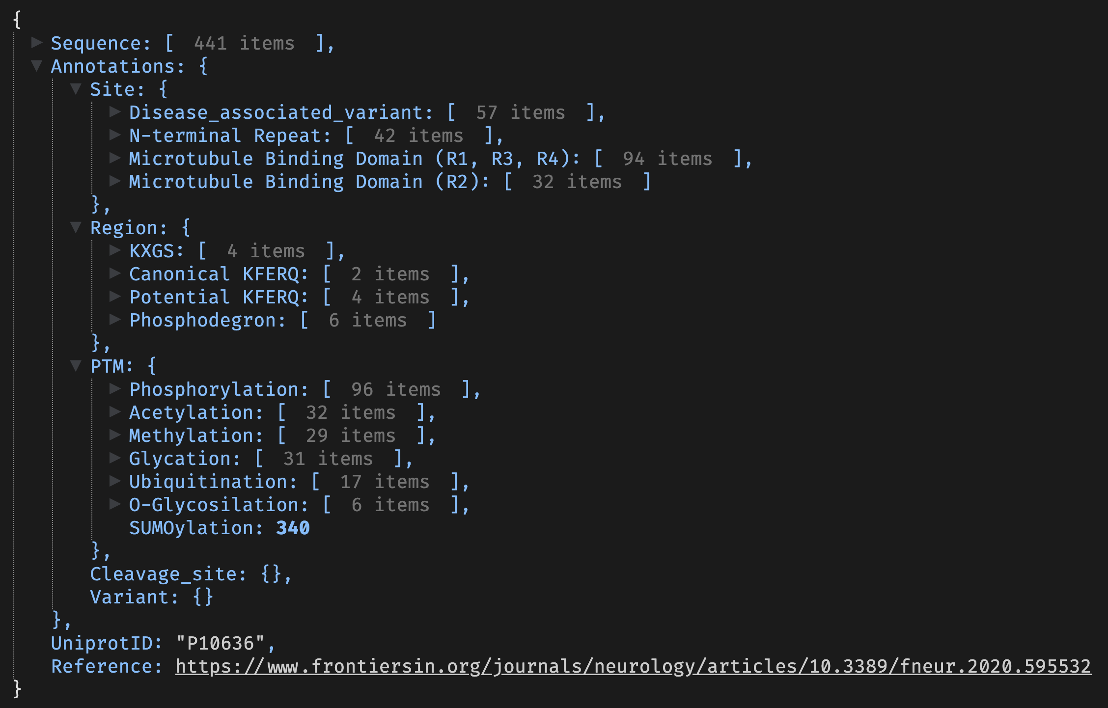 - Site A named list of (unsigned) integer vectors. The name gives the type of annotation, and the vector contains the amino acid positions of the annotation.